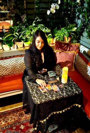 +Table cloth and tasteful props to create an inviting and mystic atmosphere for the tarot readings